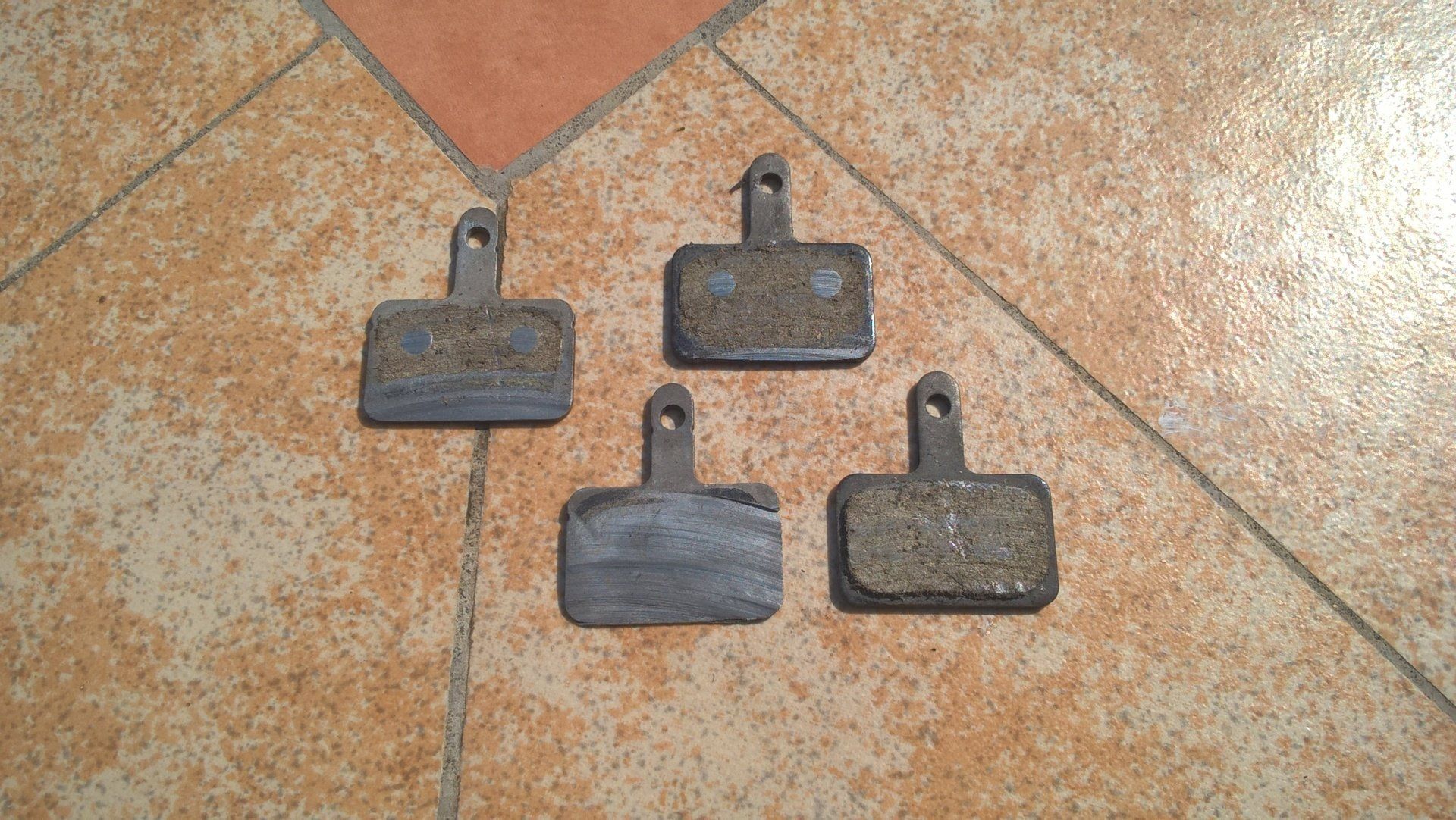 By the halfway point my brakes were shot. Sounding like metal on metal I had to be careful of my speed to compensate. Having taken the pads out since you can see how the water and grit had affected them.